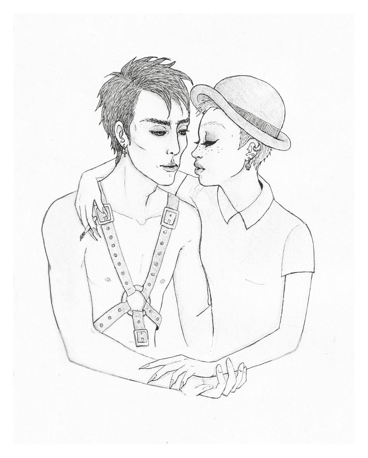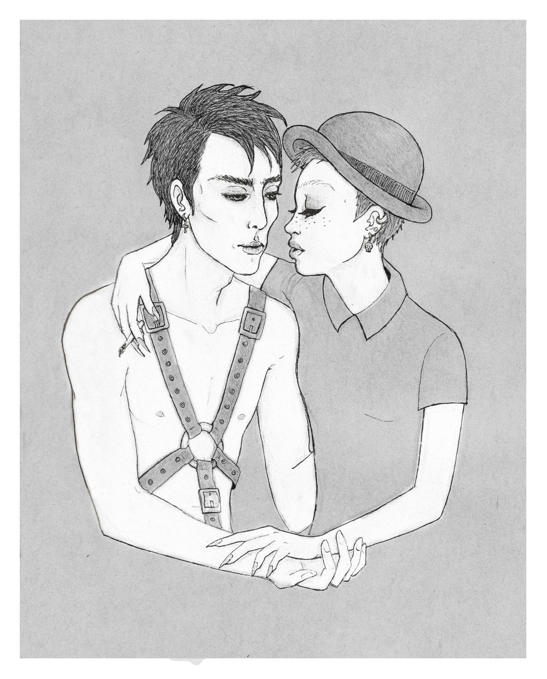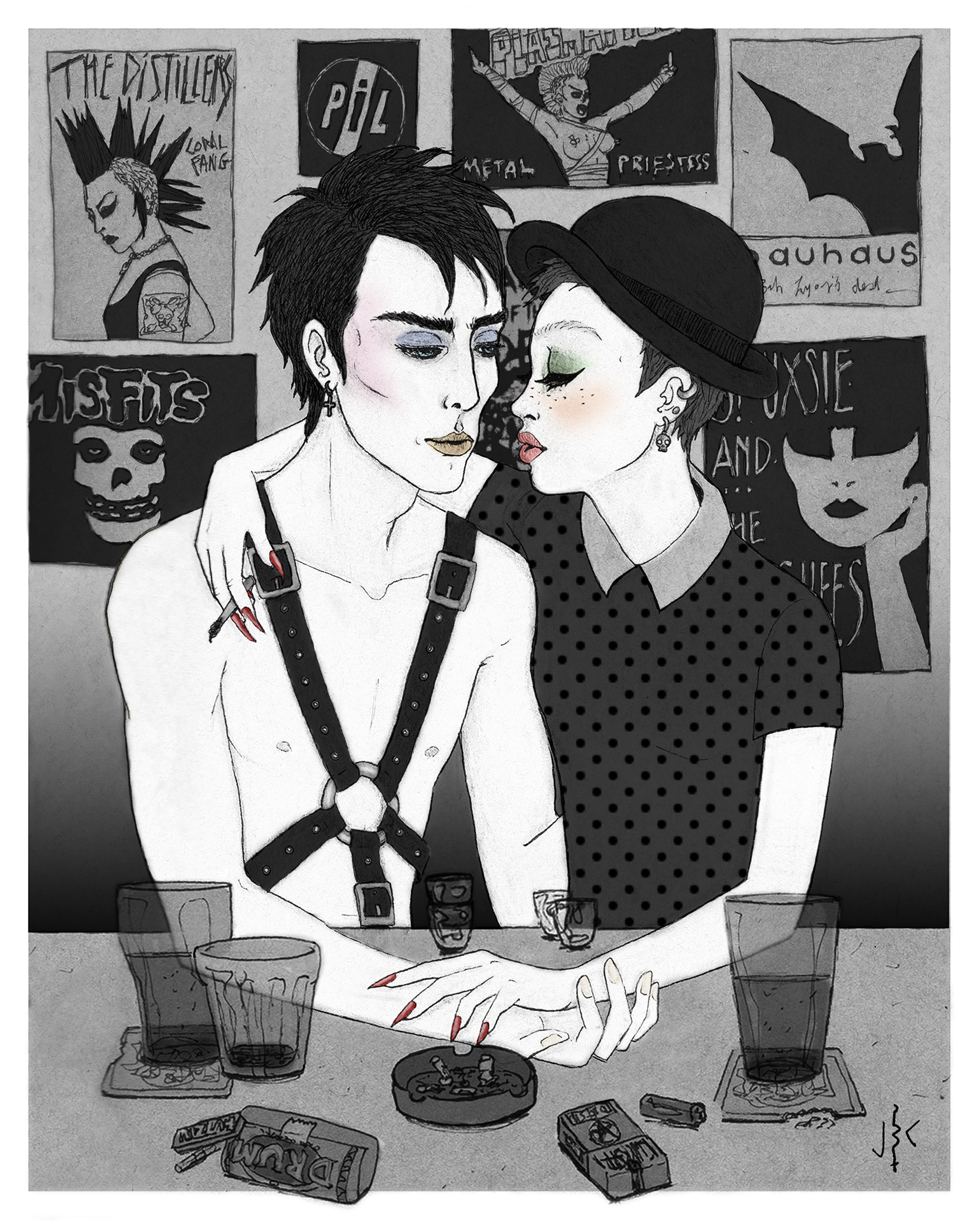 Makeup can look great on everyone, as for the harness... this is not your average couple. I managed to sneak in posters of bands I'm a fan of, and actually the CD cover between the two characters, 'March of the Dead', is one of my other projects.